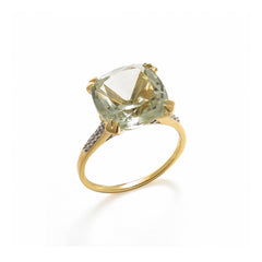 10K Yellow Gold Green Amethyst & White Topaz Ring