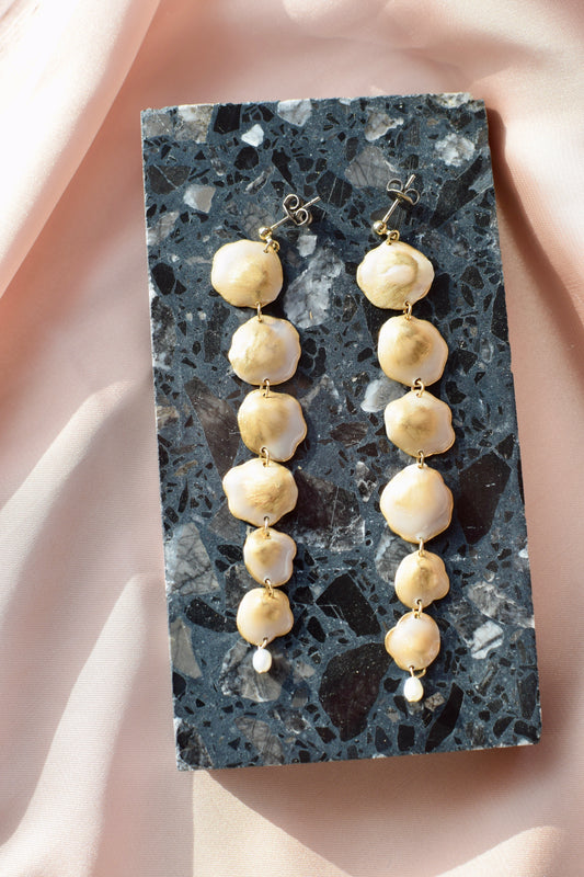 Elevate your look with these statement earrings from Phonecia Jewelry. Each pair is meticulously hand-painted on vintage brass, ensuring that no two pieces are exactly alike. Measuring approximately 4 inches long, they feature a post back for secure, comfortable wear. Lightweight yet eye-catching, these earrings are perfect for adding a touch of artisanal charm and timeless elegance to any outfit—whether day or night.