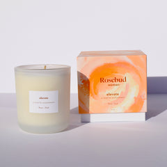 Our Limited Edition Elevate candles are 100% vegan. The floral scent of damask rose gives a rich and textural note that is wrapped with smoky oud wood with hints of clove. The label peels off without any residue so the candle can be used as plain glass to match any decor. Elevate will burn for an average of 65 hours.